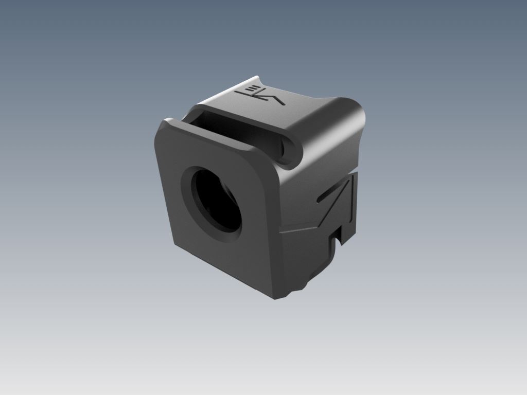 Kompenzátor zdvihu pro zbraně GLOCK® slimline ráže 9mm Luger. Pasuje na zbraně s tovární prodlouženou hlavní se závitem